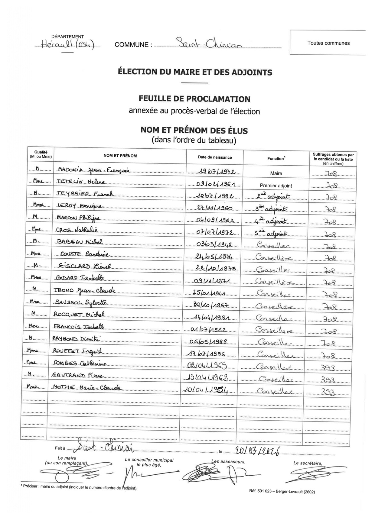 Election du Maire et des adjoints